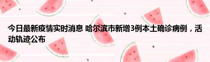 今日最新疫情实时消息 哈尔滨市新增3例本土确诊病例,活动轨迹公布