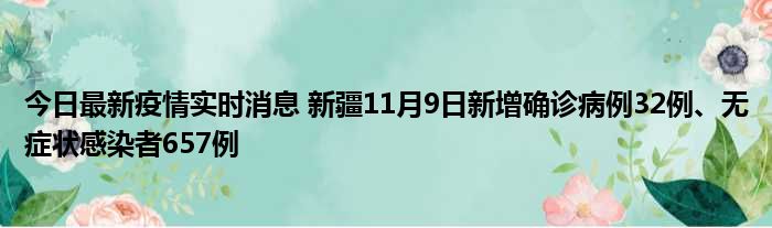 新疆卫健委通报,11月9日0时至24时,新疆维吾尔自治区新增确诊病例32例,新增无症状感染者657例,新增确诊病例治愈出院7例,新增无症状感