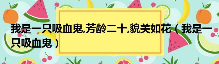 导读 大家好,今天小六子来为大家解答以下的问题,关于我是一只吸血鬼,芳龄二十,貌美如花,我是一只吸血鬼这个很多人还不知道,现在让我们一起来