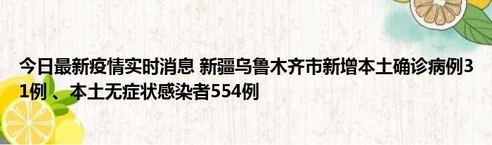 今日最新疫情实时消息 新疆乌鲁木齐市新增本土确诊病例31例 、本土无症状感染者554例
