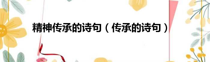 大家好,今天小六子来为大家解答以下的问题,关于精神传承的诗句,传承的诗句这个很多人还不知道,现在让我们一起来看看吧!