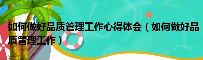 如何做好品质管理工作心得体会(如何做好品质管理工作)