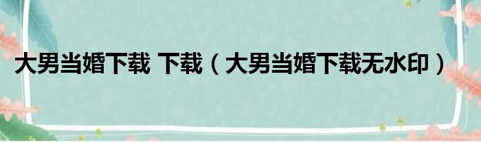 大家好,今天小六子来为大家解答以下的问题,关于大男当婚下载 下载,大男当婚下载无水印这个很多人还不知道,现在让我们一起来看看吧!