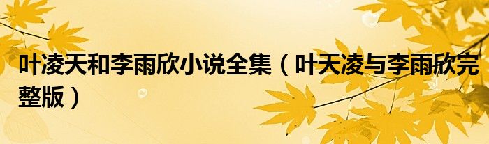叶凌天和李雨欣小说全集(叶天凌与李雨欣完整版)