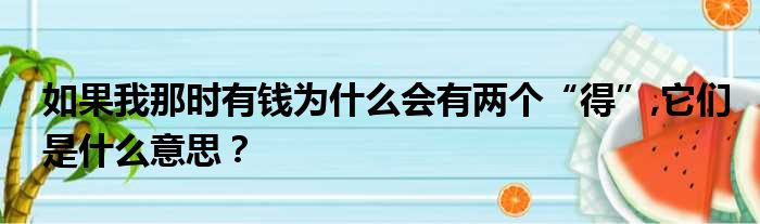 导读 大家好,今天小六子来为大家解答以下的问题,关于如果我那时有钱为什么会有两个“得”,它们是什么意思?这个很多人还不知道,现在让我们一起