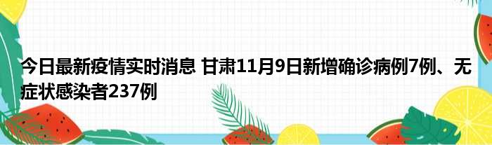 今日最新疫情实时消息 甘肃11月9日新增确诊病例7例、无症状感染者237例
