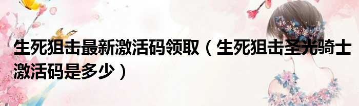 导读 大家好,今天小六子来为大家解答以下的问题,关于生死狙击最新激活码领取,生死狙击圣光骑士激活码是多少这个很多人还不知道,现在让我们一