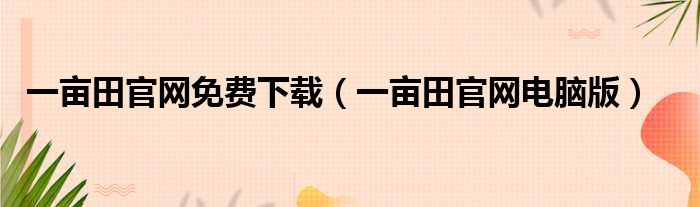 导读 大家好,今天小六子来为大家解答以下的问题,关于一亩田官网免费下载,一亩田官网电脑版这个很多人还不知道,现在让我们一起来看看吧!1、有