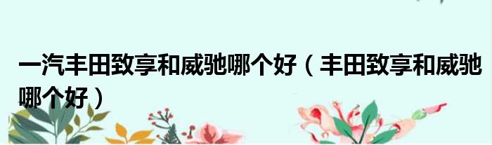 导读 大家好,今天小六子来为大家解答以下的问题,关于一汽丰田致享和威驰哪个好,丰田致享和威驰哪个好这个很多人还不知道,现在让我们一起来看