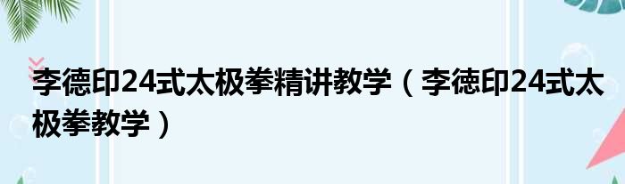 李德印24式太极拳精讲教学(李徳印24式太极拳教学)