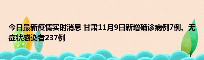 今日最新疫情实时消息 甘肃11月9日新增确诊病例7例、无症状感染者237例
