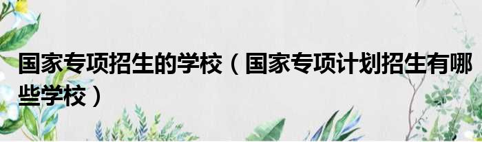 国家专项招生的学校(国家专项计划招生有哪些学校)