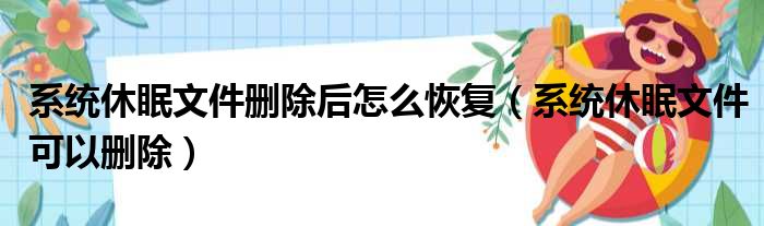 导读 大家好,今天小六子来为大家解答以下的问题,关于系统休眠文件删除后怎么恢复,系统休眠文件可以删除这个很多人还不知道,现在让我们一起来