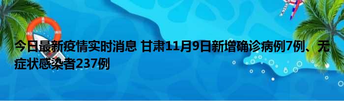今日最新疫情实时消息 甘肃11月9日新增确诊病例7例、无症状感染者237例