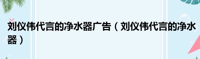 刘仪伟代言的净水器广告(刘仪伟代言的净水器)