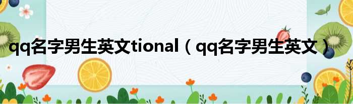 大家好,今天小六子来为大家解答以下的问题,关于qq名字男生英文tional,qq名字男生英文这个很多人还不知道,现在让我们一起来看看吧!