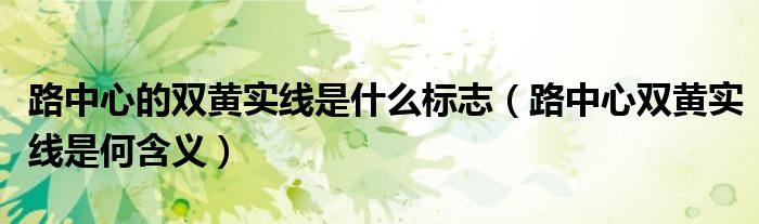 导读 大家好,今天小六子来为大家解答以下的问题,关于路中心的双黄实线是什么标志,路中心双黄实线是何含义这个很多人还不知道,现在让我们一起