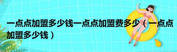 一点点加盟多少钱一点点加盟费多少(一点点加盟多少钱)