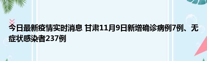 今日最新疫情实时消息 甘肃11月9日新增确诊病例7例、无症状感染者237例