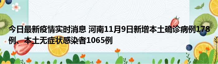今日最新疫情实时消息 河南11月9日新增本土确诊病例178例、本土无症状感染者1065例