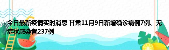 今日最新疫情实时消息 甘肃11月9日新增确诊病例7例、无症状感染者237例