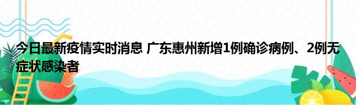 今日最新疫情实时消息 广东惠州新增1例确诊病例、2例无症状感染者