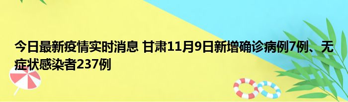 今日最新疫情实时消息 甘肃11月9日新增确诊病例7例、无症状感染者237例