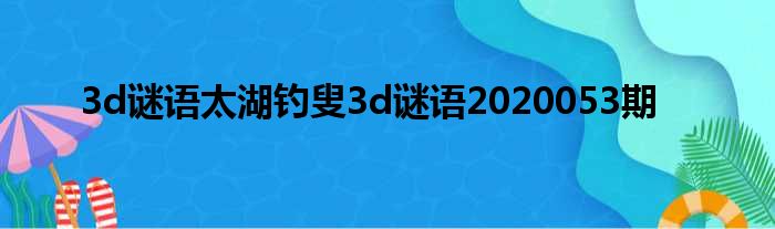 大家好,今天小六子来为大家解答以下的问题,关于3d谜语太湖钓叟3d谜语2020053期这个很多人还不知道,现在让我们一起来看看吧!