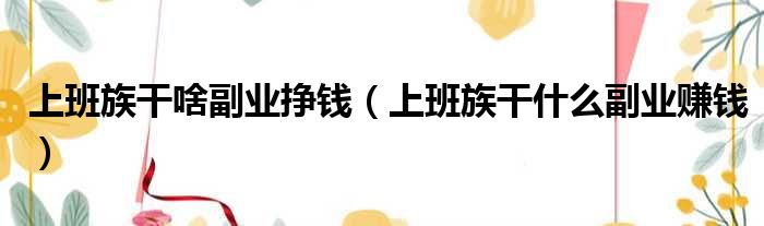 上班族干啥副业挣钱(上班族干什么副业赚钱)