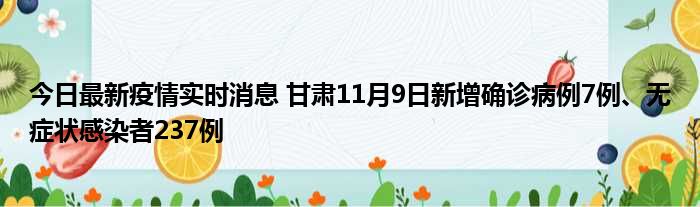 今日最新疫情实时消息 甘肃11月9日新增确诊病例7例、无症状感染者237例