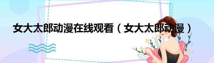 大家好,今天小六子来为大家解答以下的问题,关于女大太郎动漫在线观看,女大太郎动漫这个很多人还不知道,现在让我们一起来看看吧!