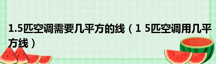 导读 大家好,今天小六子来为大家解答以下的问题,关于1 5匹空调需要几平方的线,1 5匹空调用几平方线这个很多人还不知道,现在让我们一起来看看