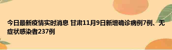 今日最新疫情实时消息 甘肃11月9日新增确诊病例7例、无症状感染者237例