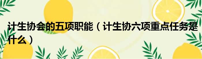 导读 大家好,今天小六子来为大家解答以下的问题,关于计生协会的五项职能,计生协六项重点任务是什么这个很多人还不知道,现在让我们一起来看看