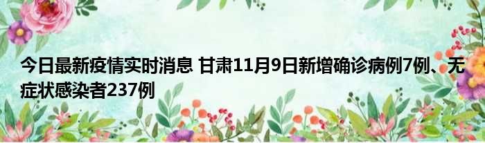 今日最新疫情实时消息 甘肃11月9日新增确诊病例7例、无症状感染者237例