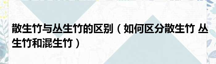 导读 大家好,今天小六子来为大家解答以下的问题,关于散生竹与丛生竹的区别,如何区分散生竹 丛生竹和混生竹这个很多人还不知道,现在让我们一