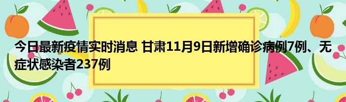 今日最新疫情实时消息 甘肃11月9日新增确诊病例7例、无症状感染者237例