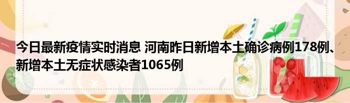 您的位置:首页 >房产频道 > 综合精选 > 今日最新疫情实时消息 河南昨日新增本土确诊病例178例、新增本土无症状感染者1065例 2022-11-21 04:28:17 • 来源: 导读 免责声明:本文由用户上传,如有侵权请联系删除! 上一篇:长安大学图书馆官网首页(长安大学图书馆) 下一篇:今日最新疫情实时消息 广东惠州新增1例新冠肺炎确诊病例