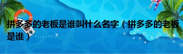 拼多多的老板是谁叫什么名字(拼多多的老板是谁)
