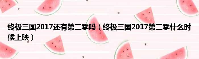终极三国2017还有第二季吗(终极三国2017第二季什么时候上映)
