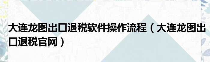 导读 大家好,今天小六子来为大家解答以下的问题,关于大连龙图出口退税软件操作流程,大连龙图出口退税官网这个很多人还不知道,现在让我们一起
