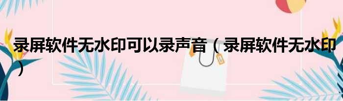 录屏软件无水印可以录声音(录屏软件无水印)
