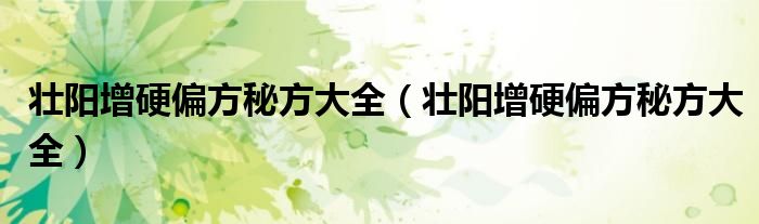 壮阳增硬偏方秘方大全(壮阳增硬偏方秘方大全)