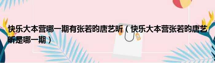 导读 大家好,今天小六子来为大家解答以下的问题,关于快乐大本营哪一期有张若昀唐艺昕,快乐大本营张若昀唐艺昕是哪一期这个很多人还不知道,现