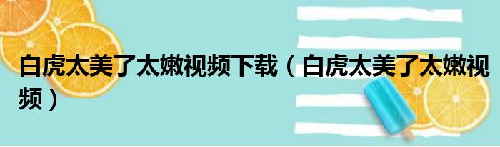 导读 大家好,今天小六子来为大家解答以下的问题,关于白虎太美了太嫩视频下载,白虎太美了太嫩视频这个很多人还不知道,现在让我们一起来看看吧