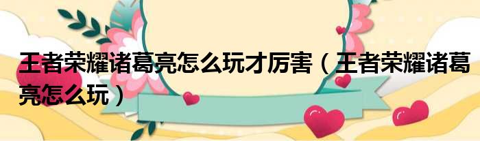 王者荣耀诸葛亮怎么玩才厉害(王者荣耀诸葛亮怎么玩)