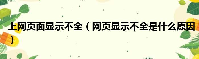 导读 大家好,今天小六子来为大家解答以下的问题,关于上网页面显示不全,网页显示不全是什么原因这个很多人还不知道,现在让我们一起来看看吧!1