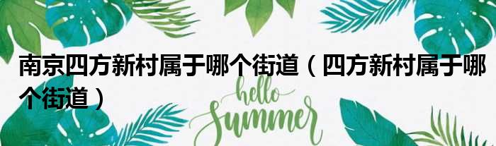 南京四方新村属于哪个街道(四方新村属于哪个街道)