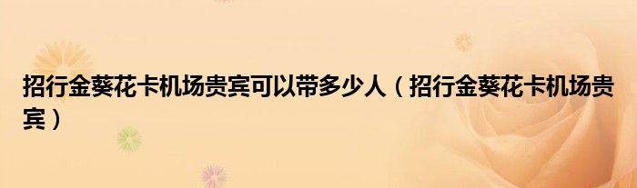 导读 大家好,今天小六子来为大家解答以下的问题,关于招行金葵花卡机场贵宾可以带多少人,招行金葵花卡机场贵宾这个很多人还不知道,现在让我们