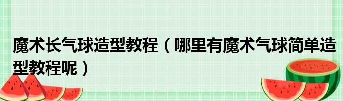 导读 大家好,今天小六子来为大家解答以下的问题,关于魔术长气球造型教程,哪里有魔术气球简单造型教程呢这个很多人还不知道,现在让我们一起来